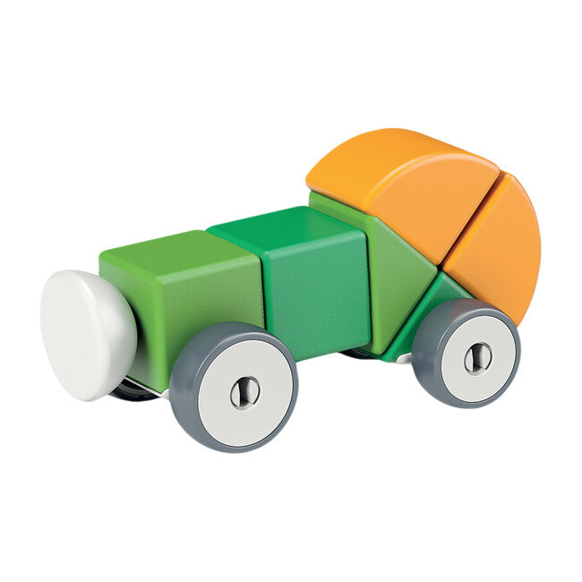 Made with 100% recycled plastic, Magicube Magnetic Building Blocks 13 pcs will allow your toddler to build different shapes, color combinations and 3D structures using Geomag Magicubes that are uniquely designed to connect on all sides. Includes four block shapes and wheels allowing toddlers to build a large assortment of construction projects! This set contains 13 magnetic blocks in four shapes. STEM.org authenticated Magicubes help in the development of creativity, fine motor skills in addition to stimulating imaginative play and curiosity through the science of magnetic construction.